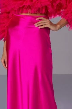 Want to add a stunning pop of color to your wardrobe? The Akira Label Beautiful Heart Satin Maxi Skirt is a must-have for your skirt rotation. It features a maxi length silhouette and a glamorous satin base, complete with a concealed side zipper closure. The possibilities are endless with this piece – dress it up with heels and a turtleneck, or throw on sneakers and a cropped tee for an everyday fit!