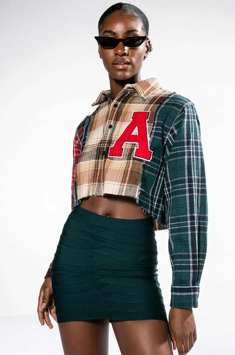 The AKIRA Label Body Ody Ody Bandage Knit Mini Skirt features a bodycon bandage knit fabrication, tonal striped detailing, cross front design, pull on fit, and mini length.
