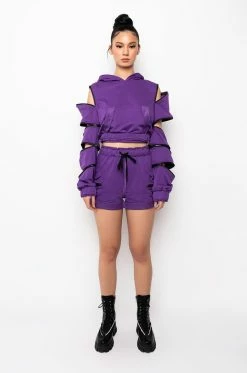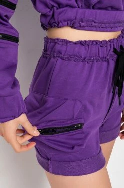 The AKIRA Bois Lie SweatShort features a sweatshirt-like cozy knit fabrication, a high rise drawstring elastic waistband, and dual zip front cargo pockets. Complete with raw detailing at the waist and cuffed hems. Pairs perfectly with the coordinating Bois Lie Sweatshirt.