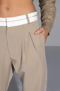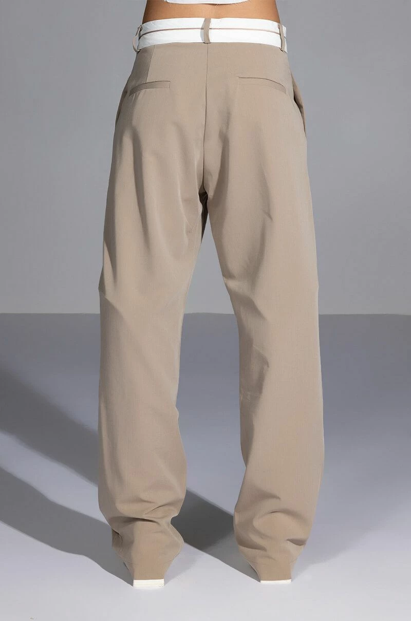The AKIRA Label Certified Boss Wide Leg Trouser features a smooth, lightweight fabrication, a high rise waist, a wide fold over-inspired waistband, working belt loops, on seam slant side pockets, pleat front detailing, jetted back pockets, and a wide leg silhouette. Complete with a hook and eye clasp and zipper front closure. Pair this suited-up piece with a mock neck top and pumps to complete your tailored look.