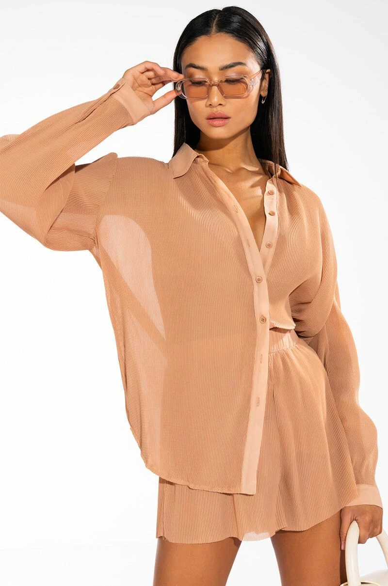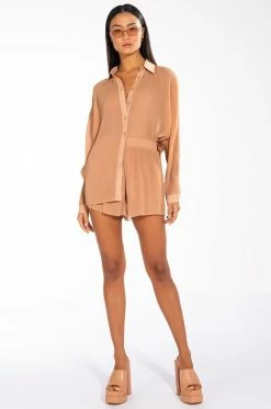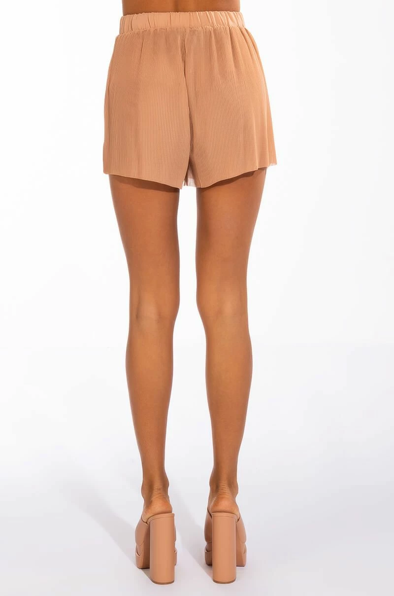 Do not disturb, major lounging in progress. The AKIRA Label DND Relaxed Short features a lightweight pleated fabrication,a high rise waistline, a mini short silhouette, and a shirred elastic waistband. Pairs well with the coordinating DND Relaxed Button Down and cozy yet chic mules..