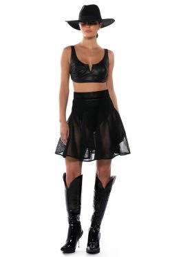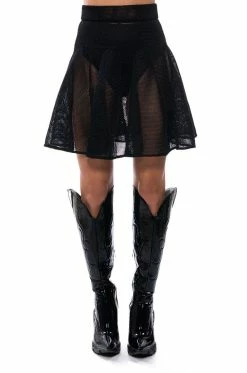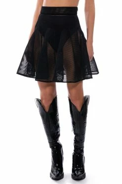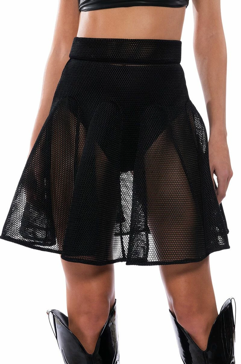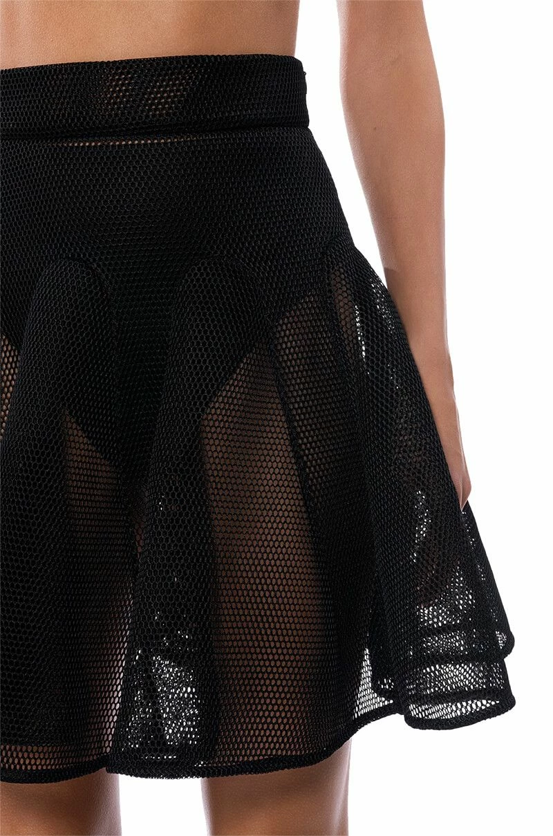 The AKIRA Label Hate The Player Pleated Mesh Mini Skirt is made from an unlined honeycomb mesh fabrication and features a high rise waist, a wide waistband, pleated stitching, a mini length silhouette, and a tonal side zipper closure.
