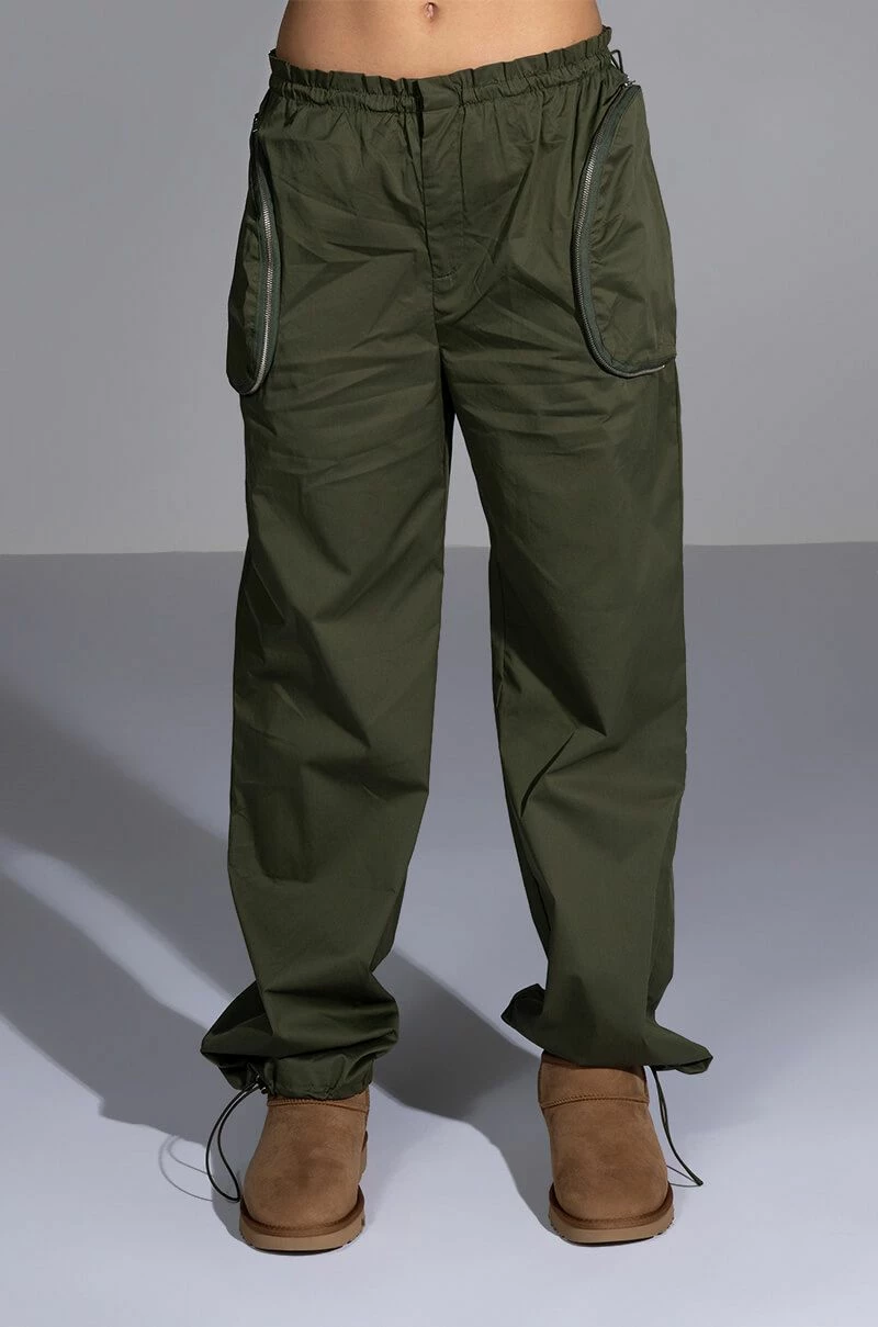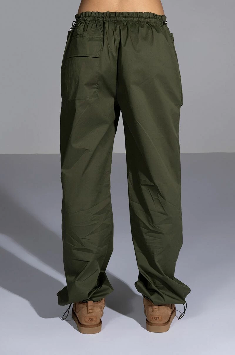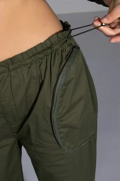 The AKIRA Label Dylan Parachute Cargo Jogger is made from a slick, lightweight windbreaker fabrication and features a high rise toggle drawstring paperbag waist, zippered cargo front pockets, a relaxed fit, a flap back pocket, and toggle drawstring ankle hems. Complete with a front snap button and zipper closure. Pair this piece with the coordinating AKIRA Label Dylan Cropped Windbreaker to complete your look!