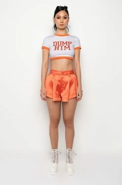 Chic to cheek! The AKIRA Label Feeling Cheeky Satin Shorts feature a sleek satin fabrication, a loosely pleated flowy design, a double button and zipper enclosure, and working belt loops. Style these bottoms with the coordinating AKIRA Feeling Cheeky Satin Wrap Front Blouse and a pair of knee high boots for a colorful going-out look.
