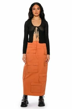 Sheβs the cargo skirt of our dreams, The AKIRA Label Field Of Dreams Cargo Maxi Skirt is made from a smooth, canvas fabrication, and features a drawstring waistband and an allover cargo flap pockets design. Complete with a high waisted silhouette and a back slit at the bottom hem. Pair these pants with a mesh bodysuit and chunky combat boots for a completed hot girl look!