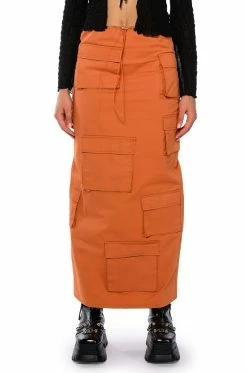 Sheβs the cargo skirt of our dreams, The AKIRA Label Field Of Dreams Cargo Maxi Skirt is made from a smooth, canvas fabrication, and features a drawstring waistband and an allover cargo flap pockets design. Complete with a high waisted silhouette and a back slit at the bottom hem. Pair these pants with a mesh bodysuit and chunky combat boots for a completed hot girl look!