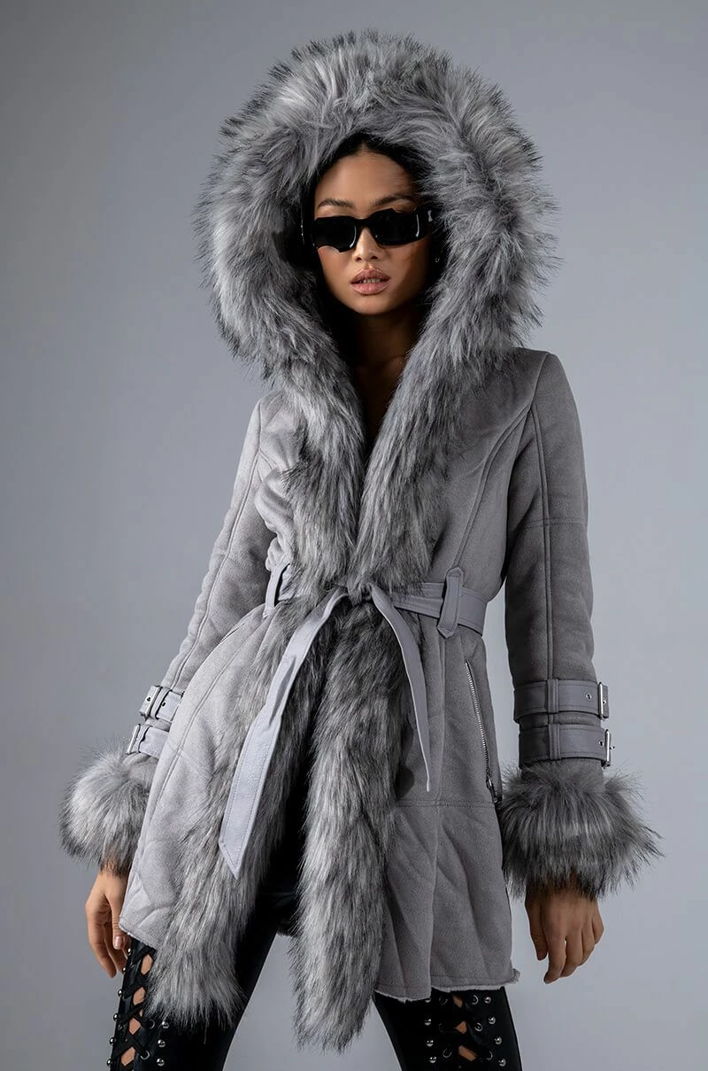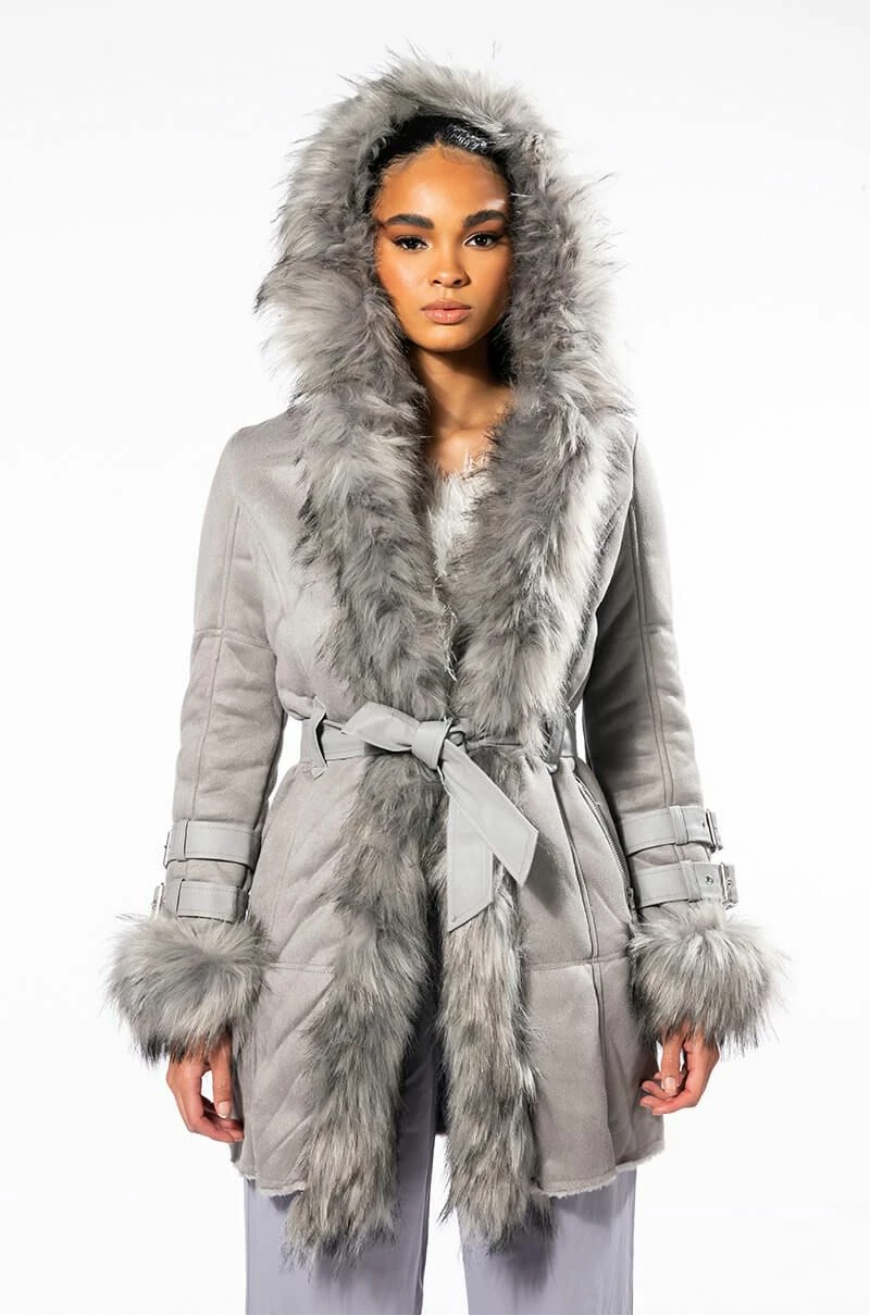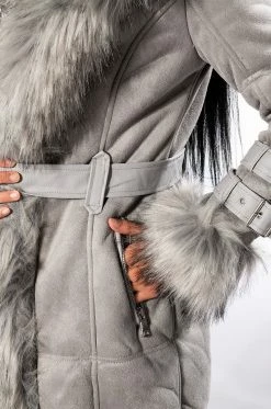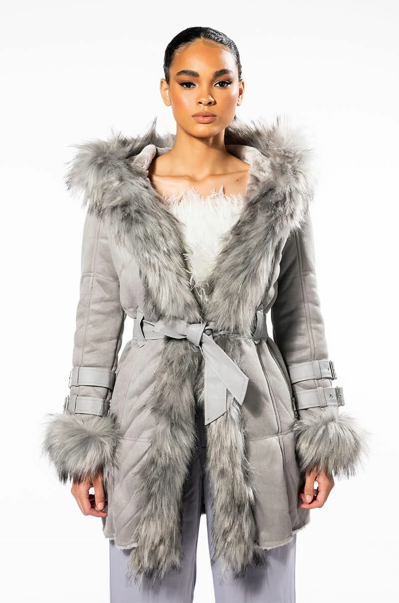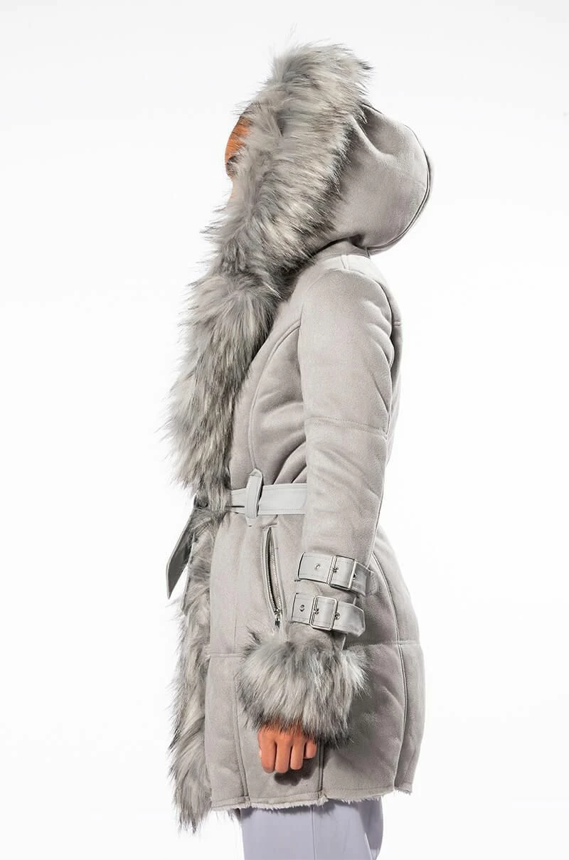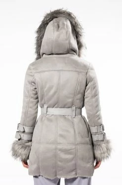 – 55% polyurethane 45% viscose (shell), 100% acrylic (faux fur)