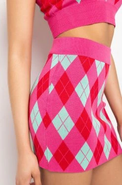 The AKIRA Label Get A Clue Knit Mini Skirt features a stretchy ribbed knit base, mini length, a multicolor allover argyle print, and a wide elastic waistband. Complete this look with the matching AKIRA Label Get A Clue Knit Crop Cardigan for a cozy schoolgirl look.