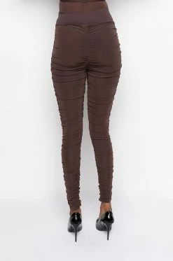 The AKIRA Label Get It Right Get It Mesh Pant features a lined stretch mesh fabrication, ruched details up the sides and center, an elastic waistband, and ankle length bodycon silhouette. Pair with the coordinating Get It Right Get It Mesh Tie Front Bodysuit.