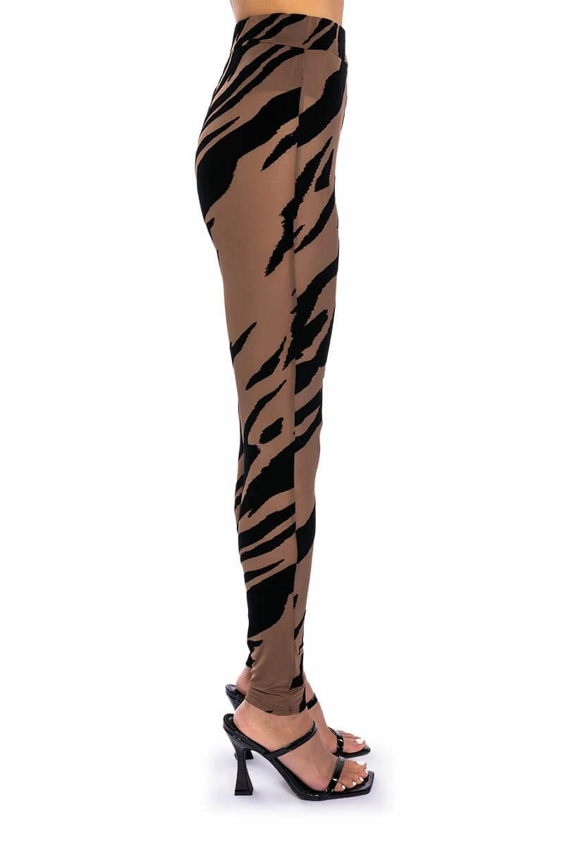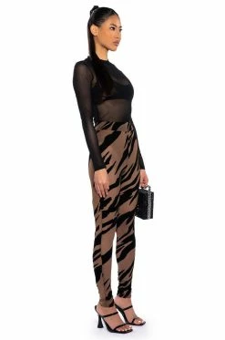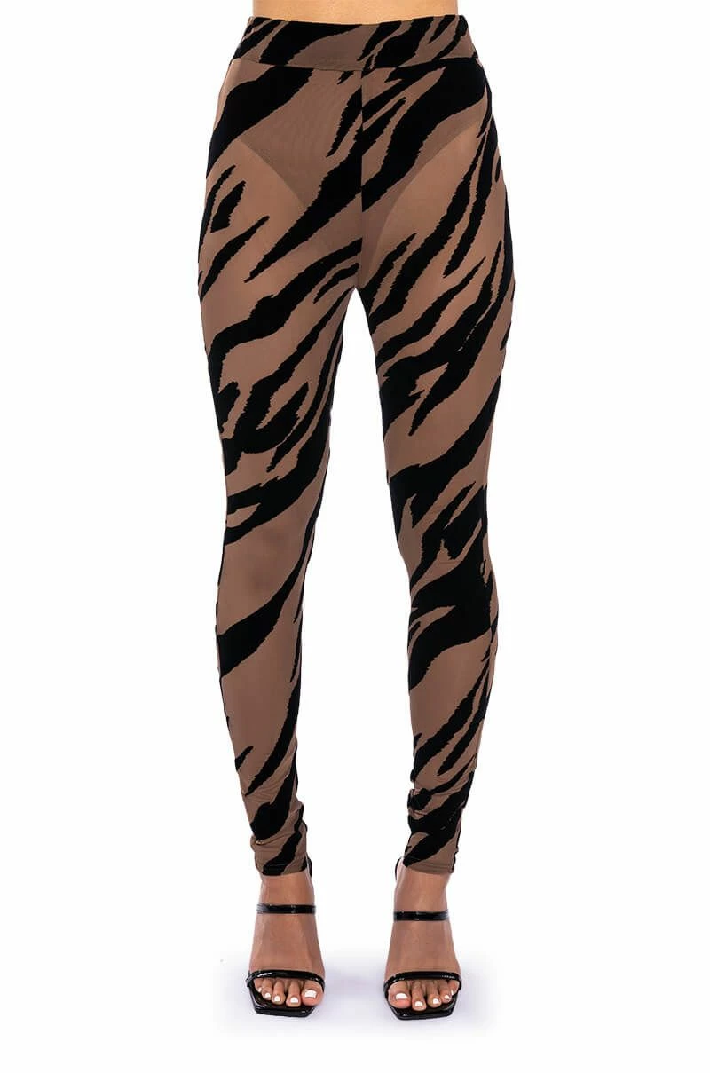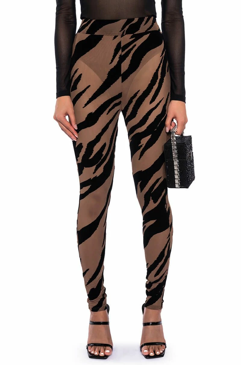 Trust your intuition with The AKIRA Label Girl’s Instinct High Rise Legging! This fierce piece is made from a sheer mesh fabrication and features a velvet-embossed tiger print, a high rise waist with an elastic waistband, a pull-on silhouette, a skinny leg design, and an attached inner opaque panty with a cheeky bottom fit. Sizes S-XL: Pair this piece with the coordinating AKIRA Label Girl’s Instinct Duster to complete your look.