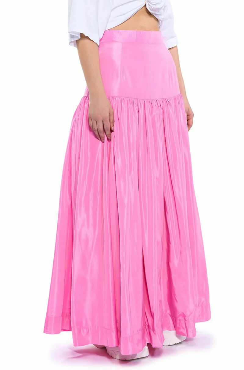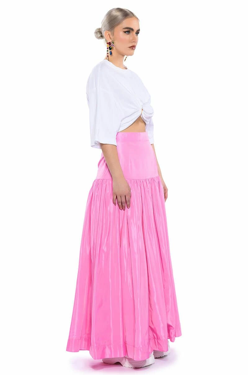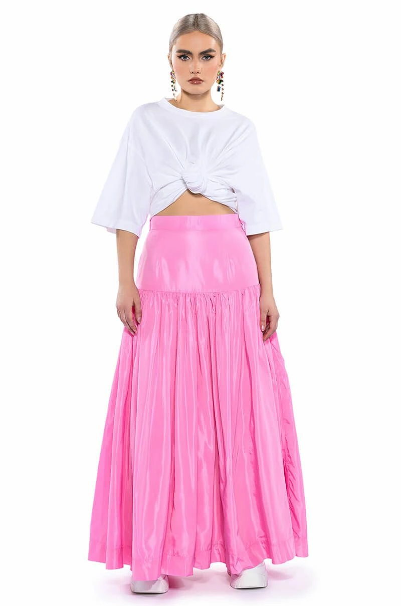 Hit the city streets in style with The AKIRA Label Go To Town Maxi Skirt. This luxe piece features a smooth fabrication, a high rise waist, drop waist tiered body detailing, a maxi length, and a tulle-trim polyester inner lining for added volume. Complete with an elastic back waistband and a tonal back zipper closure. Pair this piece with a cropped sweater and pumps for a princess-inspired ensemble.