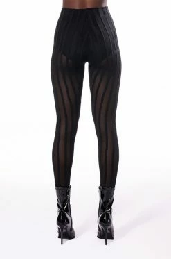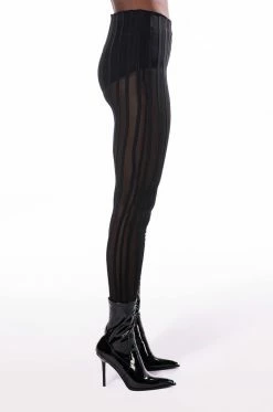 Speak your truth loud and proud in The AKIRA Label Hear Me Say Mesh Striped Legging! These bold bottoms are made from a sheer mesh fabrication and feature a high rise waist with an elastic waistband, opaque striped paneling down the legs, and a skinny leg fit. Par them with a sleek bodysuit and booties to complete your look.