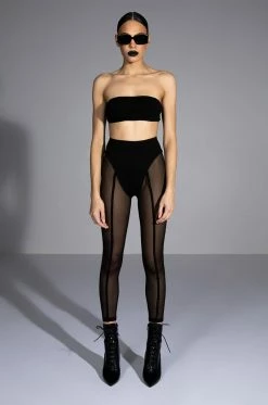 Sheer genius. The AKIRA Label I Am The View Sheer Legging features a high rise elastic waistline, a sheer mesh fabrication, front and back seam detailing, and panty-like panel detailing. Pair with a sleek bodysuit and studded biker jacket for a look worth taking in.