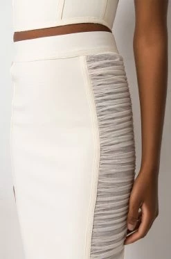 Get that bag! The AKIRA Label In My Bag Mesh Detail Bandage Midi Skirt is made from a bandage knit fabrication and features a high rise waist, elastic waistband, sexy bodycon fit, sheer ruched mesh side panels, midi length, and a pull-on silhouette. Pair this piece with the coordinating AKIRA Label In My Bag One Shoulder Mesh Detail Bandage Tank and some patent leather pumps to complete your look.