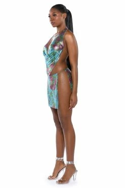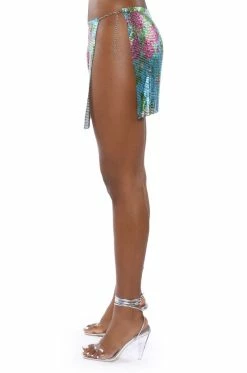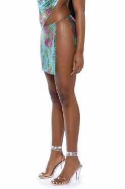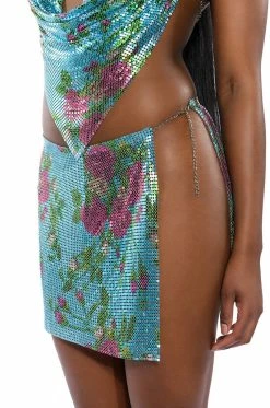 Lost in the moment… Make memories you’ll never forget in The AKIRA Label In The Moment Floral Chainmail Skirt.This metallic metal mesh piece features floral print patterning, a completely slit side, and an adjustable lobster claw chain closure at the waist. Pair this edgy mini with the coordinating AKIRA Label In The Moment Floral Chainmail Halter Top for a complete look!