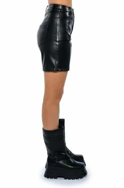 The AKIRA Label In The Zone Bermuda Shorts With 4 Way Stretch feature a faux leather fabrication, a high rise waist, working belt loops, and a long inseam. Complete with a zippered front button closure, slant side pockets, working back pockets, and a soft inner lining. These curve-hugging bottoms pair perfectly with a chic blazer and loafers.