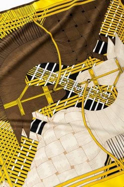 The AKIRA Label Knighted Orange Satin Scarf is made from a luxe silk fabrication and features a multicolor vintage-inspired print with whimsical horses and weaved lines. Wrap it around your neck or purse, or wear it as a top!