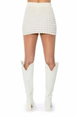 The AKIRA Label Little Miss Attitude Textured Mini Skirt features a textured unlined popcorn base, a mini length, and elastic waistband. Complete with a pull-on fit. Pair with the matching top, The AKIRA Label Little Miss Attitude Textured Bodysuit, and knee-high boots for that hot girl look!