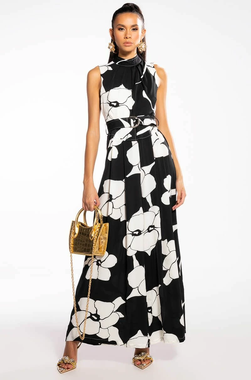 THE ONE AND ONLY WIDE LEG STRAPLESS JUMPSUIT WITH ATTACHED BELT
