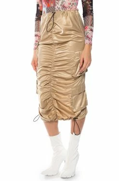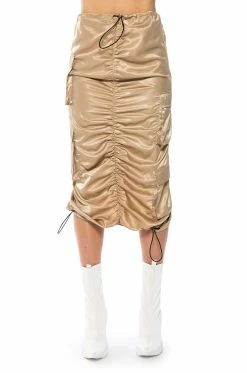 Sheβs the cargo skirt of our dreams, The AKIRA Label No Stoppin Me Cargo Midi Skirt is made from a smooth, satin fabrication, and features a drawstring waistband and side cargo flap pockets. Complete with a high waisted silhouette, ruching at the front, adjustable toggle drawstrings at the bottom hems, and a back slit for mobility. Pair these bottoms with a mesh bodysuit and chunky combat boots for a finished look!