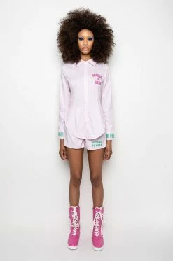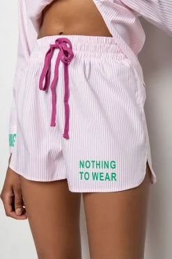 The AKIRA Label Nothing To Wear Striped Poplin Shorts are light bottoms that feature a wide elasticated drawstring waistband, striped pattern, small side slits, a dolphin short silhouette, and a “Nothing To Wear” colored text printed on the hem. Style these shorts with the coordinating AKIRA Label Nothing To Wear Striped Poplin Blouse to really get the message across.
