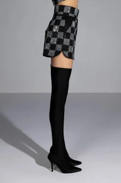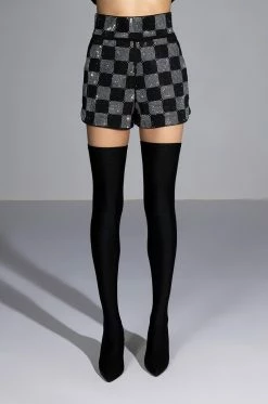 Get your choreo ready, itβs time to put on a show in The AKIRA Label Pop Star Checkered Rhinestone Short. This rhinestone-embellished dolphin shorts features a high rise waistline, rhinestone checkered patterning throughout, slant side pockets, and a hot pant silhouette. Complete your look with The Pop Star Checkered Rhinestone Blazer.