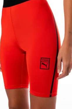 The PUMA x VOGUE Tight Shorts features a sleek, body conscious fabrication, a wide elastic waistband with tonal VOGUE + jumping cat logo imprint detailing, a high waist rise, contrast stripe sides, and an above-the-knee silhouette. Complete with a rubber VOGUE + jumping cat square logo hit at the thigh. Complete your sporty look with the matching PUMA x VOGUE Bra Top and a pair of chunky sneakers.