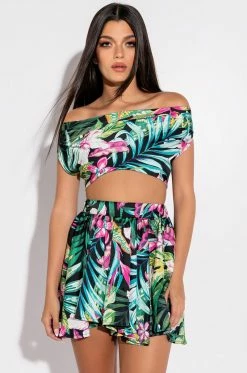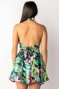 Celebrate yourself with The AKIRA Label Quality Time Floral Halter Top. This satin halter crop top features a floral orchid print pattern, a tie back halter neckline, an open back, and a scrunched elastic back band. Par this piece with the coordinating AKIRA Label Quality Time Floral Mini Shorts for a complete look.