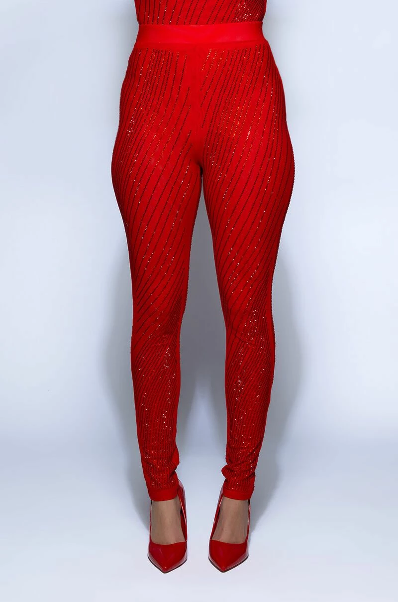 The AKIRA Label Queen Of Love Rhinestone Legging is a sheer mesh legging featuring an elasticated waistband, rhinestone stripe detailing, high waist rise, and ankle-length silhouette. Style them with the coordinating AKIRA Label Queen Of Love Rhinestone Bodysuit for a matching look.