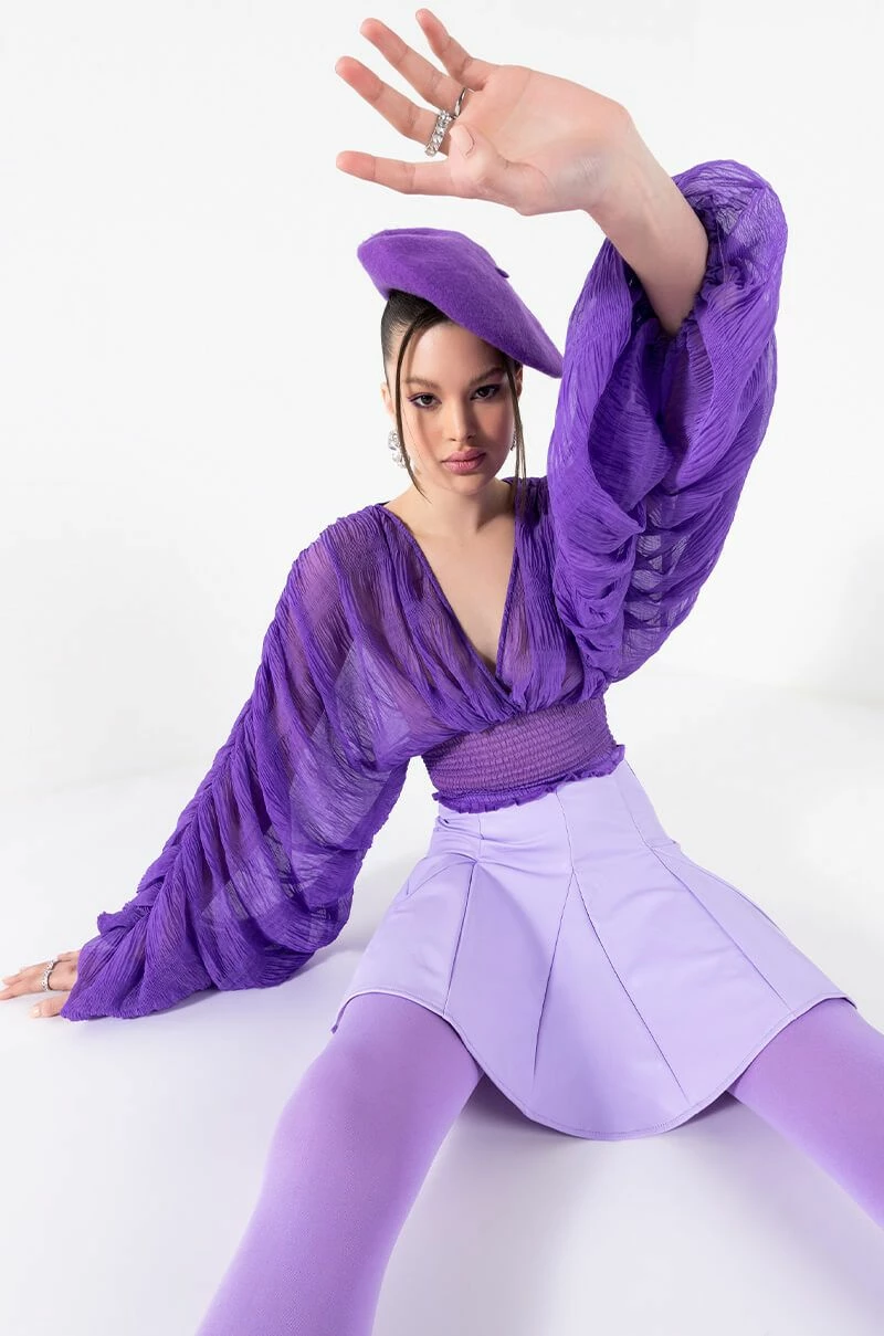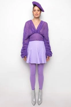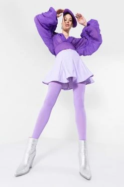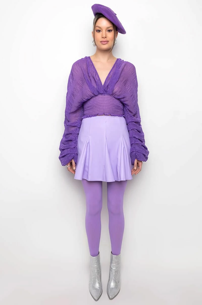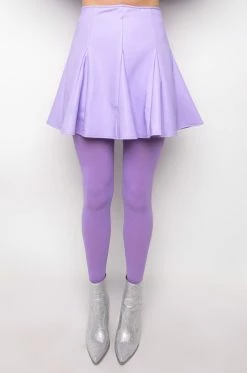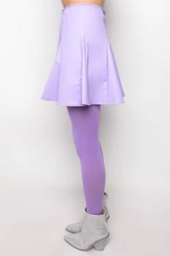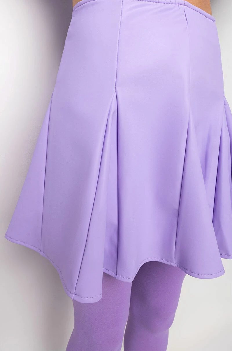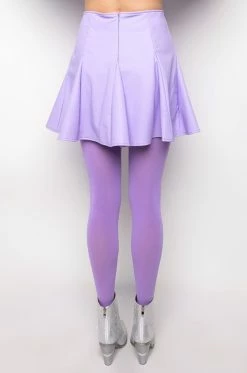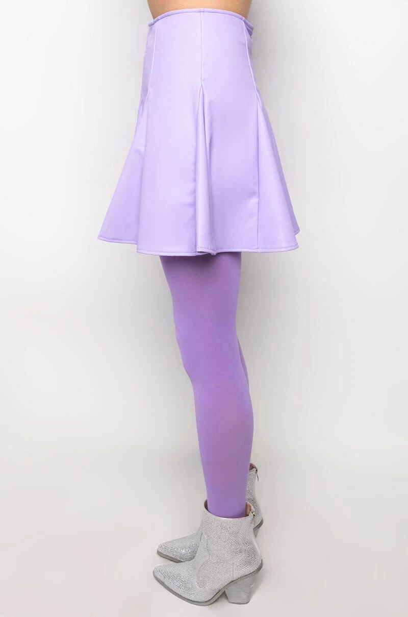 The AKIRA Label Rio Super Stretch Mini Skirt features a faux leather fabrication, a circle skirt silhouette, kick pleat detailing, a mini length, and a back zipper closure.