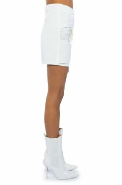The AKIRA Label Romanticizing You Poplin Mini Skirt features a menβs button down shirt-inspired fabrication, cross front button cuff shirt sleeve detailing, and a lightweight poplin fabrication. Complete with a mini length silhouette, and a concealed back zipper closure. Pair this piece with a mock neck bodysuit and knee high boots to complete your look.