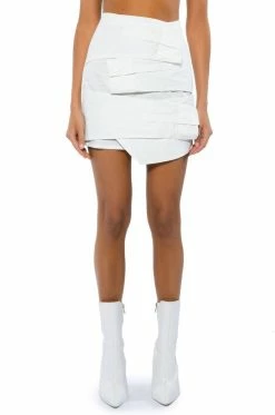 The AKIRA Label Romanticizing You Poplin Mini Skirt features a menβs button down shirt-inspired fabrication, cross front button cuff shirt sleeve detailing, and a lightweight poplin fabrication. Complete with a mini length silhouette, and a concealed back zipper closure. Pair this piece with a mock neck bodysuit and knee high boots to complete your look.