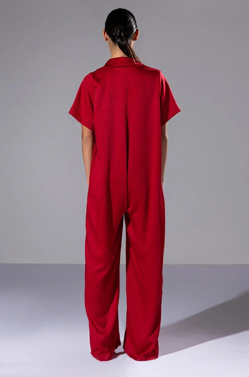 THE ONE AND ONLY WIDE LEG STRAPLESS JUMPSUIT WITH ATTACHED BELT