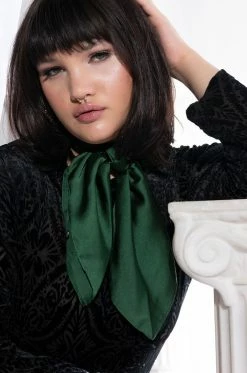 Add a pop of color to your fit with The AKIRA Label Solid Lightweight Scarf! This scarf is made from a satin fabrication, and is complete with rich green color. Wear it as a top or tie it around your favorite handbag, or rock it as a hair accessory!
