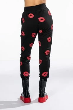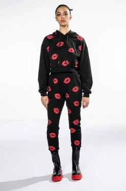 We have strong feelings for The AKIRA Label Superlove Jogger. These comfy athleisure pants feature a cozy cotton blend fabrication, an elasticated waistband, ribbed knit trim, slant side pockets, and a jogger silhouette with cinched ankle hems. Complete with rhinestone-embellished lipstick print patterning. Pair this piece with the matching AKIRA Label Superlove Hoodie to complete your look!