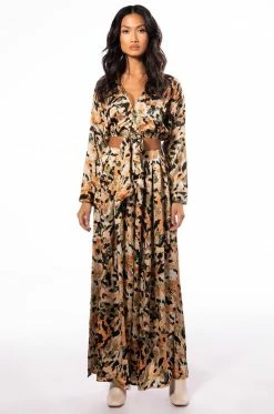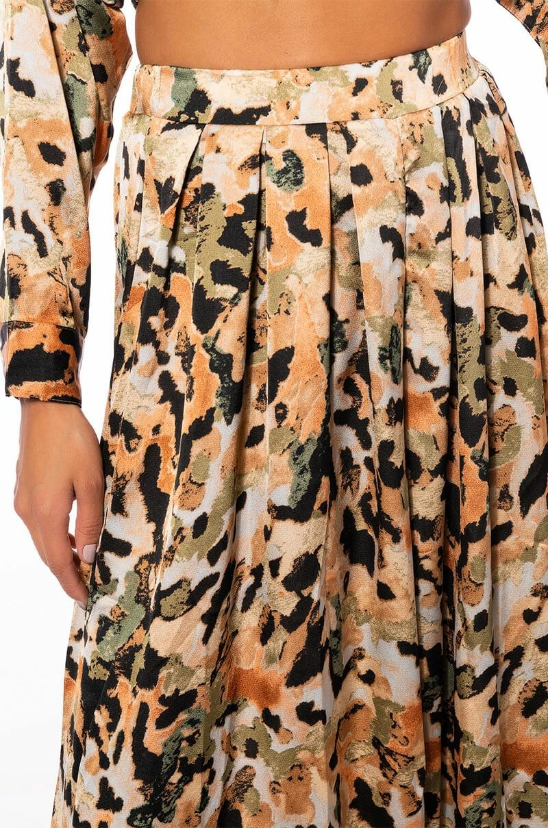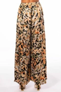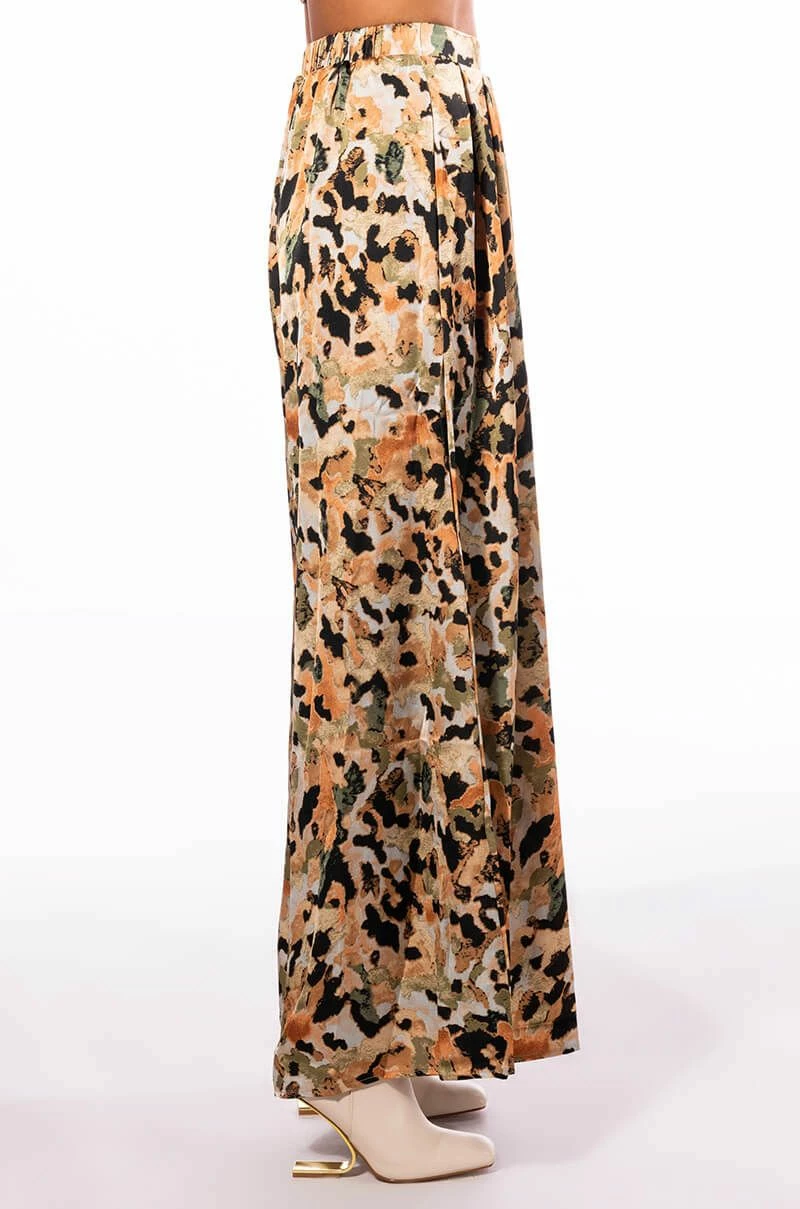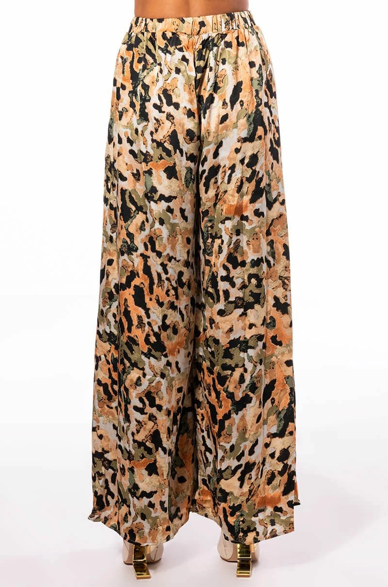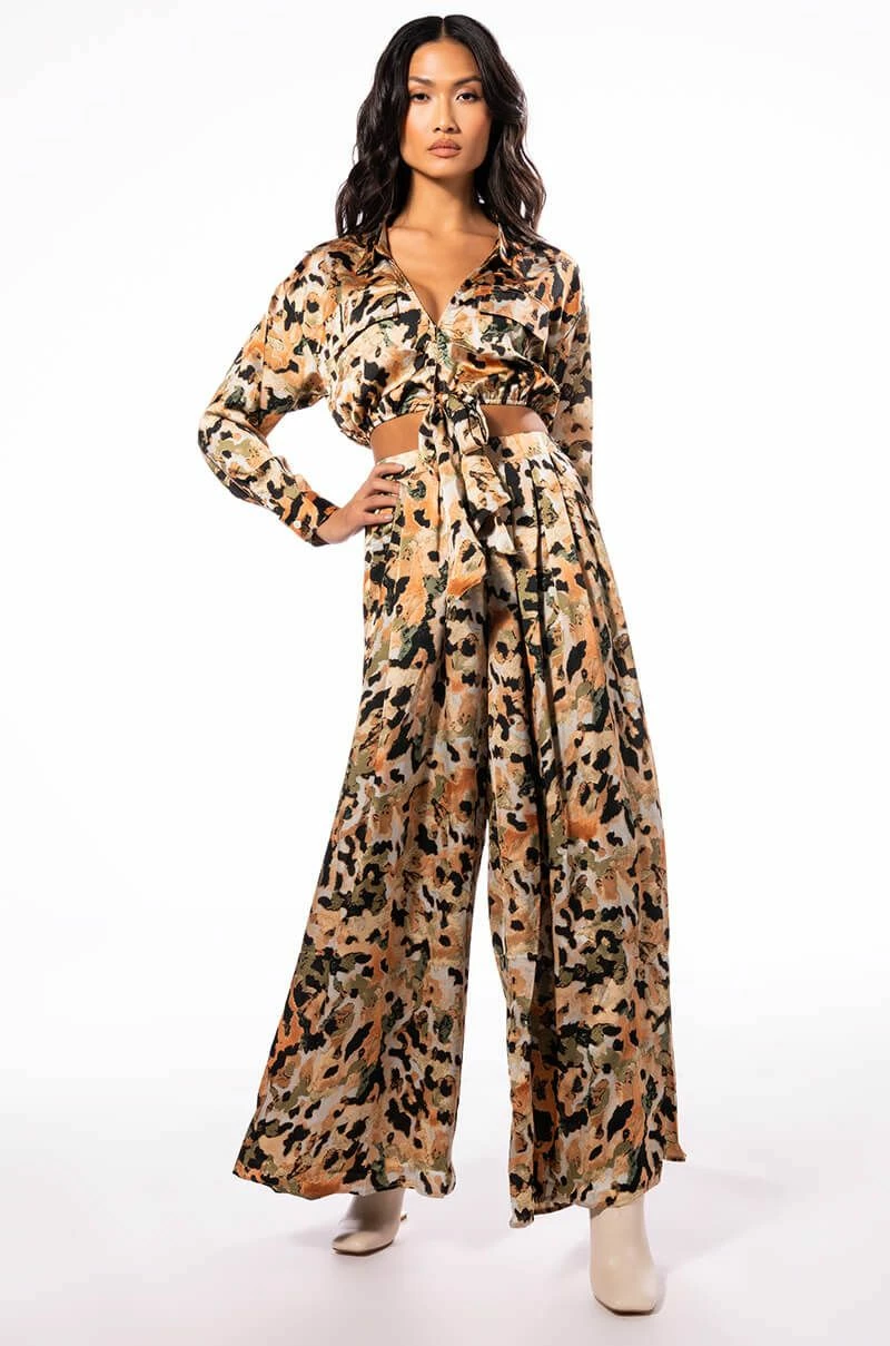 The AKIRA Label Sweet Love Wide Palazzo Pant is made from a satin fabrication, and is complete with an animal print fabrication, wide leg pants, a high rise waistline, and a ribbed elastic waistband. Complete your look with the matching AKIRA Label Sweet Love Tie Front Blouse!