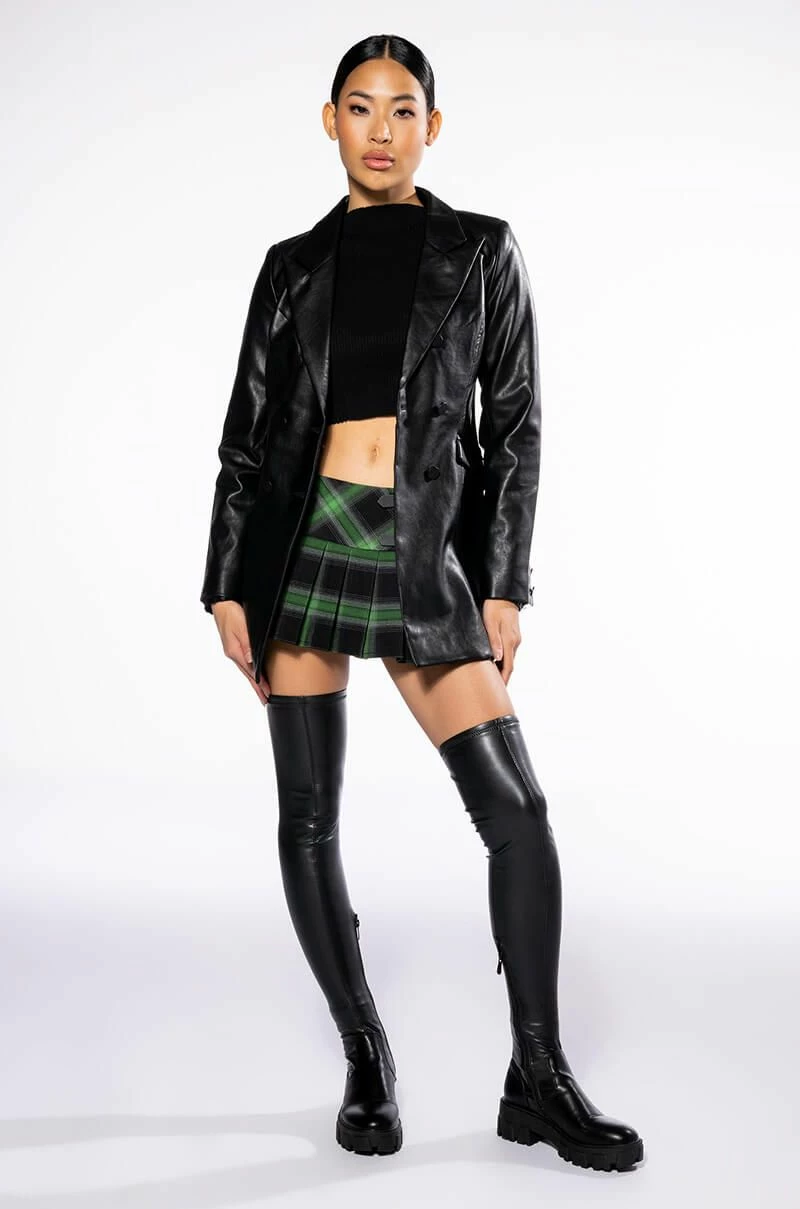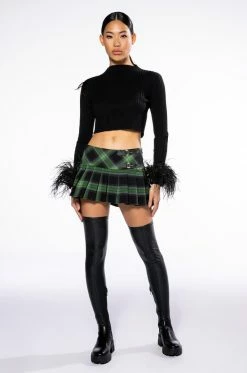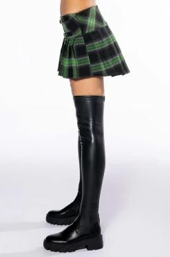 Cute yet sassy, The Akira Label The Flirt Pleated Micro Mini Skirt is made from a light plaid flannel fabrication and features a low rise waist with pleated detailing. The micro mini length design is completed with inner lining shorts, faux double buckles, and a hidden side zipper closure. Style this piece with thigh high boots to complete your look!