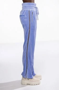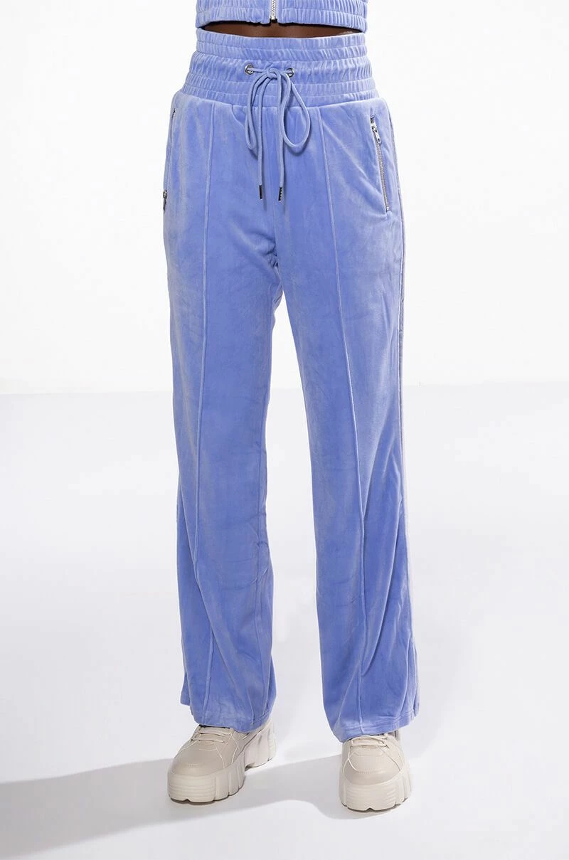The AKIRA Label The Jet Setter Velvet Wide Leg Jogger is made from a plush velvet fabrication and features a high rise waist, a wide ruched elastic drawstring waistband, column stitch detailing, mock back pockets, and a wide leg silhouette with sheer paneling. Pair this piece with the matching AKIRA Label The Jet Setter Velvet Cropped Sweatshirt to complete your look.
